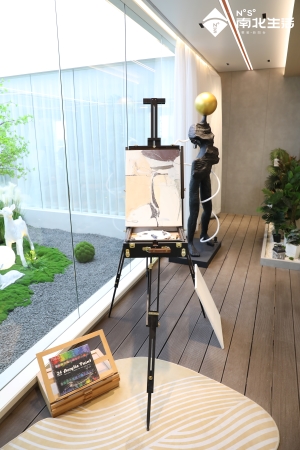 空间的绝对主角便是这画架与手掌型座椅,这是你个性的展现也是情感的抒发容器,只有充满艺术的人才能画出充满艺术的作品。在画架的背后是一个充满艺术气息的抽象模型,这是灵感的化身,也是空间氛围的绝对衬托者。